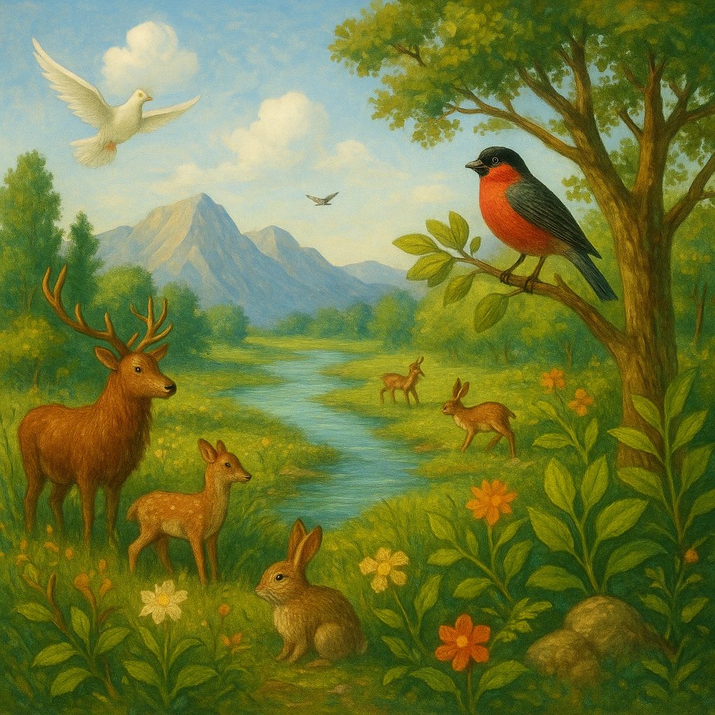 على الأرض وُجد التنوع: ألوانٌ كثيرة من الطيور والنباتات والحيوانات، وكلّها تذكّر بالخالق العظيم، ومع كل صعوبةٍ واجهتهما، كان آدم وحوّاء يتذكران أنّ الله يحب الصابرين، وأن الطريق الصحيح يبدأ بالصدق في القول والعمل.