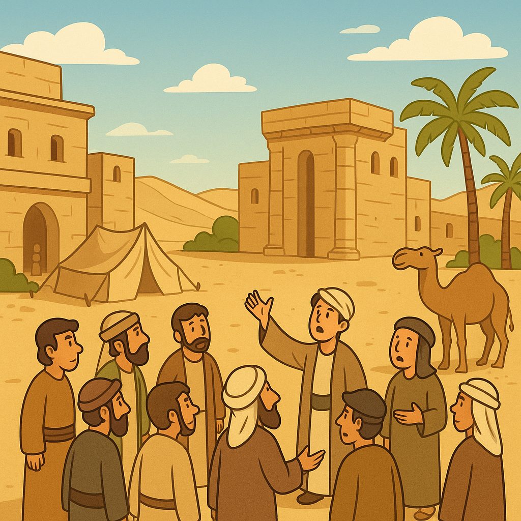 وفي يومٍ اجتمع الناس في ساحتهم الواسعة بين القصور والخيام، فوقف هود عليه السلام بينهم وقال بصوتٍ هادئٍ وواثقٍ: