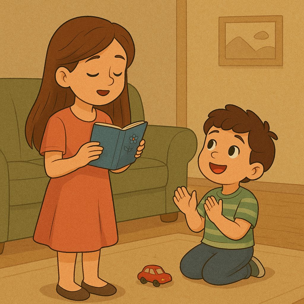 ترددت لحظة، ثم فتحت دفترها وبدأت تلقي أبياتها. كان صوتها يرتجف، لكن الكلمات خرجت رغم ذلك. عندما انتهت، صفق سامر بيديه الصغيرتين وقال: