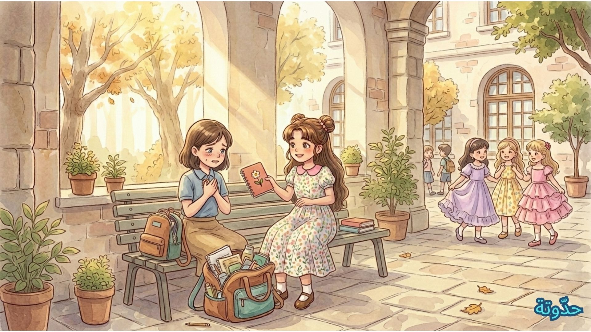 في خضم هذا الحماس، لاحظت سلمى إحدى زميلاتها تبكي لأنها أضاعت دفترها، فجلست بجانبها وبدأت تساعدها على البحث عنه في حقيبتها وتنظيم محتوياتها، لم تخبر أحدًا بما فعلت ولم تنتظر شكرًا… وفي لحظات أخرى، ساعدت زميلاتها في فهم بعض الواجبات المعقدة، وشرحت الأفكار بهدوء ووضوح، مما جعلهن يشعرن بامتنان عميق لها.