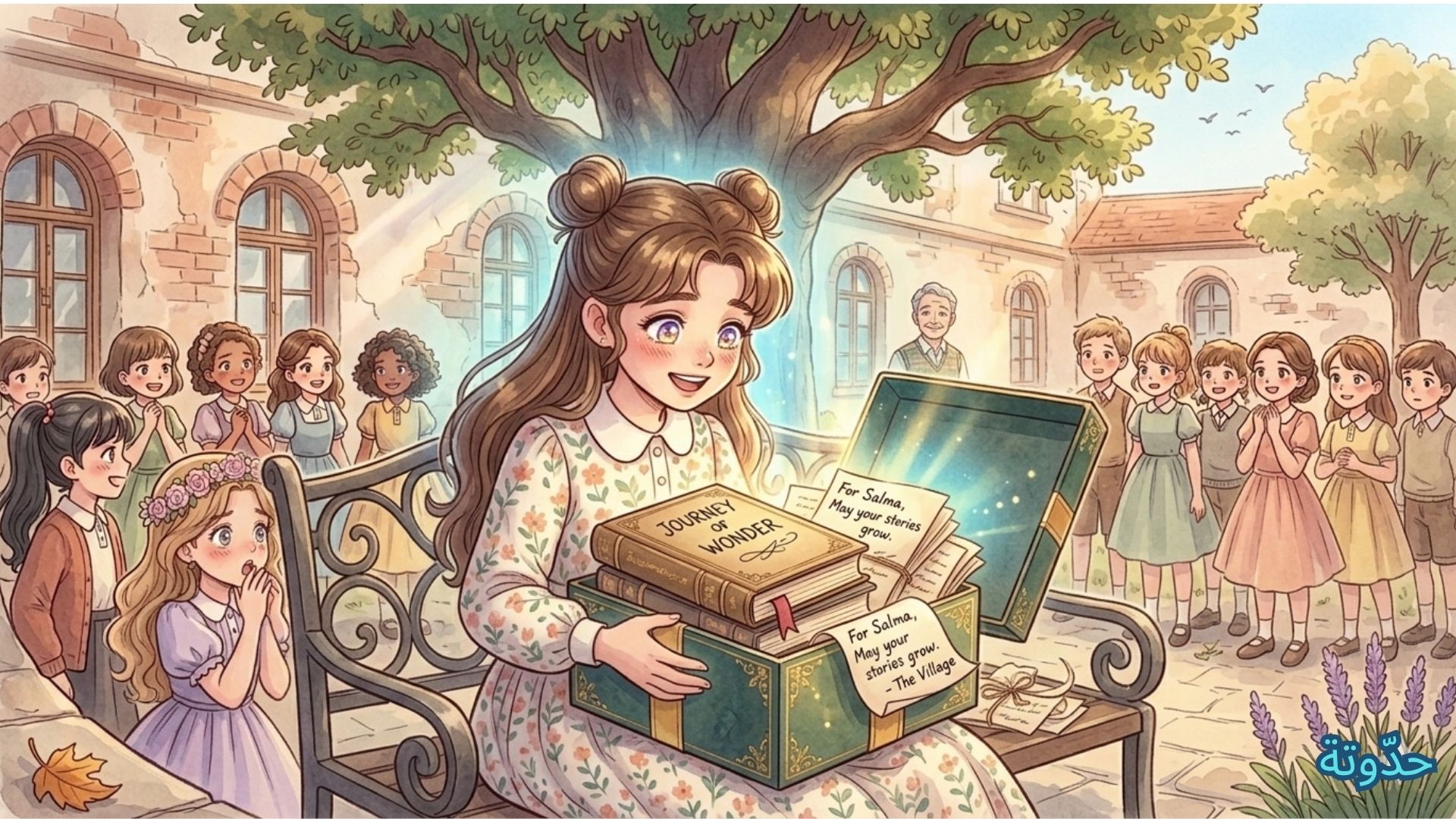 في طريق العودة إلى البيت، كانت سلمى تمشي حاملة صندوق الهدايا بين يديها، مبتسمة بخجل، لكنها شعرت بفخر داخلي عميق! أدركت أن ما زرعته من أثر في نفوس من حولها هو التاج الحقيقي…