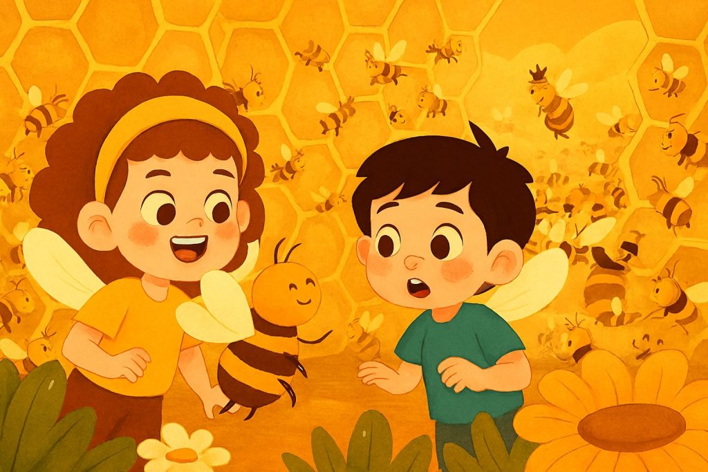 دخلوا الخلية، وإذا بعالم عجيب أمامهم: آلاف النحلات تتحرّك في انسجام تام، كأنها جيش منظّم. بعض النحل يجمع الرحيق، وبعضه ينظّف الخلية، وآخرون يعتنون باليرقات الصغيرة.