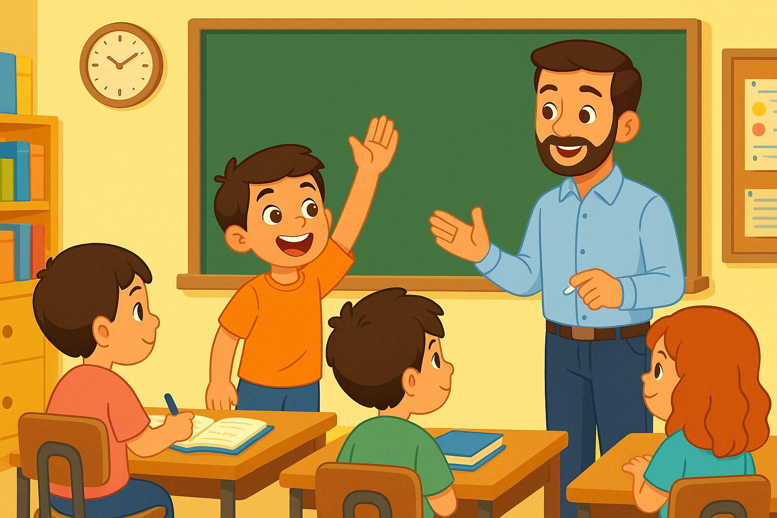 اقترب الأستاذ سامي منهم، وقد سمع حديثهم، فجلس بقربهم وقال بابتسامة: