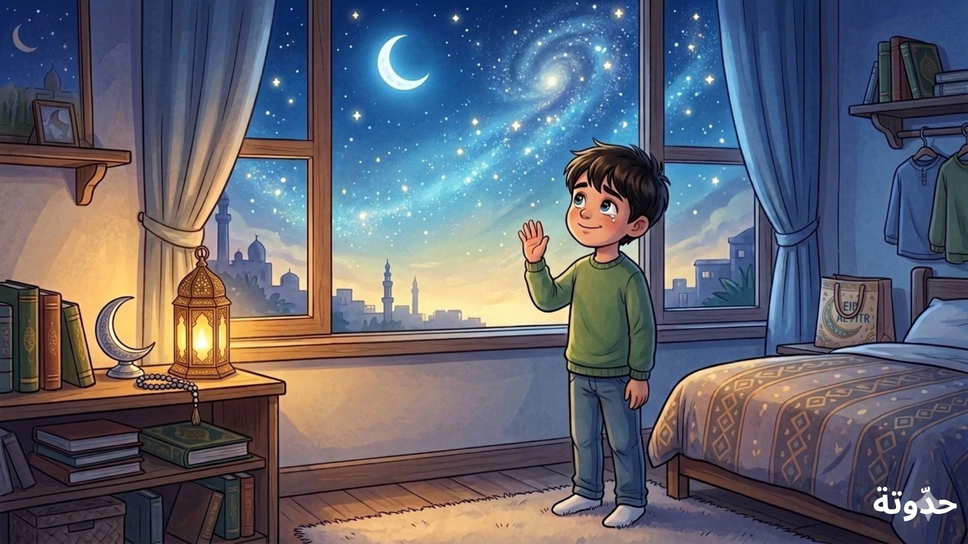 قبل أن ينام، نظر عمر من النافذة، وهمس لنفسه: